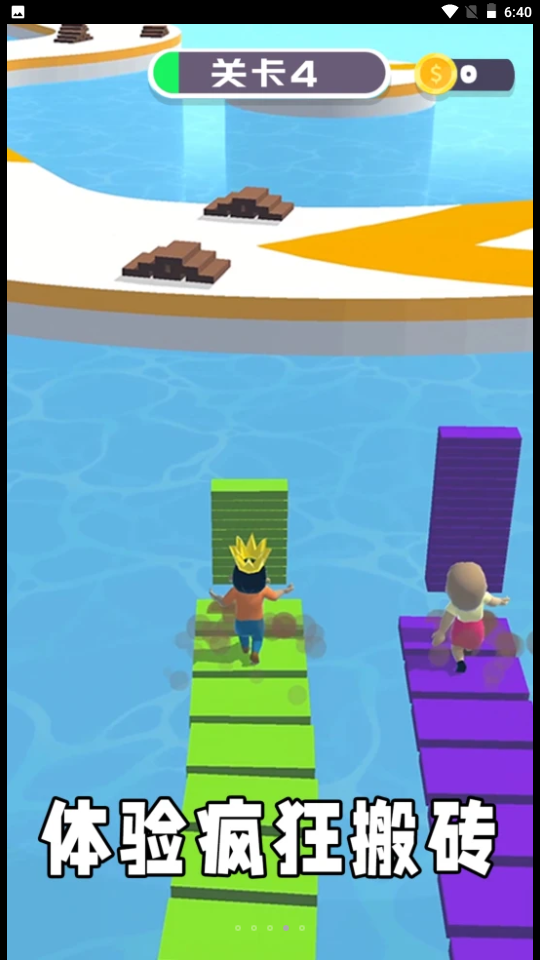 搬砖工大挑战游戏中收集不同的砖块,通过搭桥来完成一切任务,在游戏中可以互相干扰,游戏画风相当的有趣,玩法也是相当的给力,就是爽到就行了。