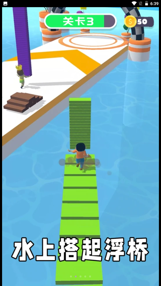 收集不同颜色的砖块,通过砖块搭桥避开障碍物,顺利到达终点,看看谁的砖背得多,就能站得更高!