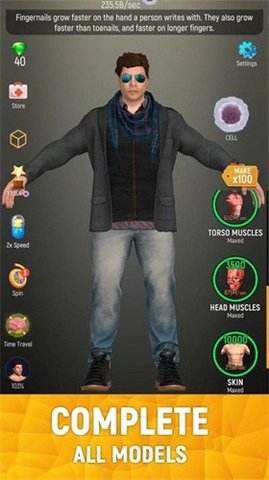3.简单有趣的游戏玩法,使用各种游戏道具不断提高进化率,更快升级体验。