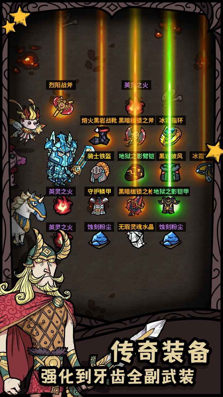 采用roguelike模式,多种主题迷宫,带你畅游北欧神话中的九界,副本内各类事件层出不穷,多种神话生物等你挑战。