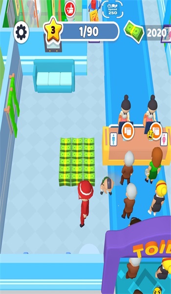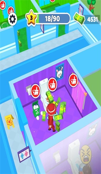 游戏的画风特别清奇,让人脑洞大开,绝对是意想不到的惊喜,这个公共厕所是需要收费的,如果客人的体验度高,那么给的钱也会多一点,工作人员也是分等级的,等级越高工资越多,干活也更加的干净利落,能够快速收拾好厕所卫生,然后去迎接下一个客人,源源不断的挣钱。