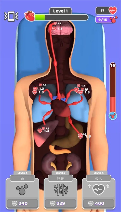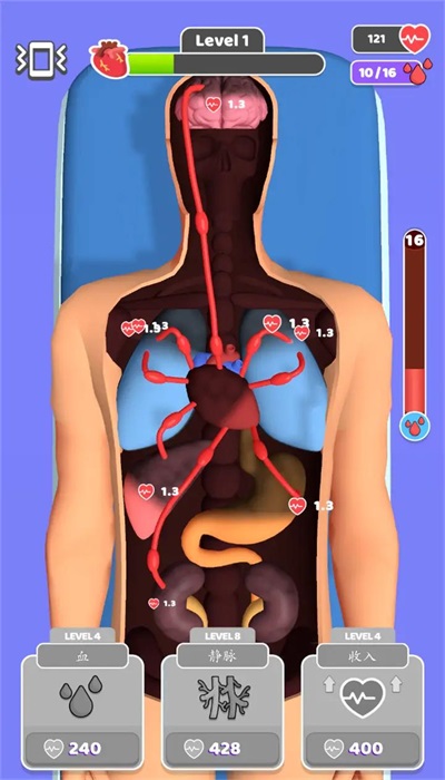 1.在游戏中非常考验玩家的手速,玩家需要快速将血液输送到各个器官当中,操作难度不大,适合所有年龄段的玩家。