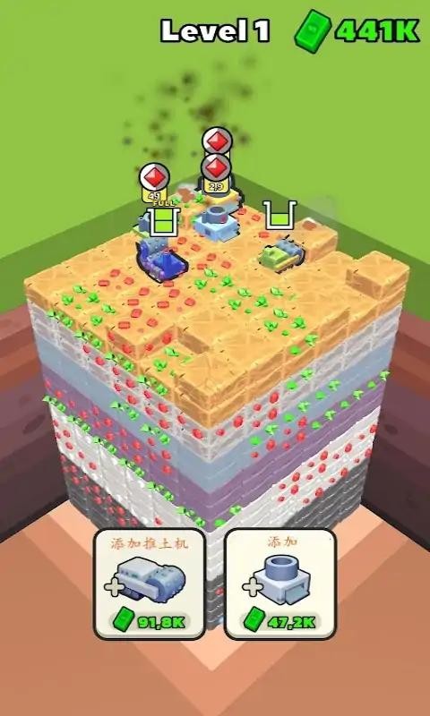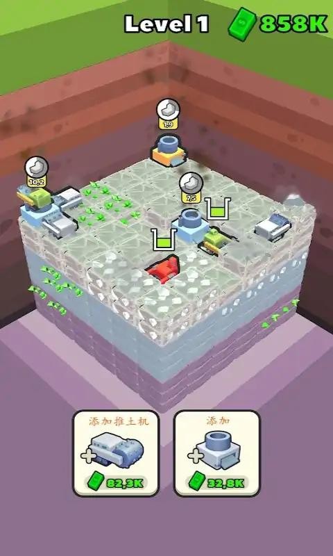 采集的金币可以升级采矿机器,好的采矿机器采矿速度更快,利润更大,后续还可以探索更大规模的矿山,体验感很好。