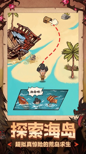 1、想要生存下去,首次解决食物来源,可以去捕鱼,或者制作陷阱,完成捕猎。