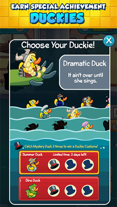 5、完成各类成就并赢取特殊主题小鸭,例如角斗鸭、宇航鸭、草裙鸭等等。