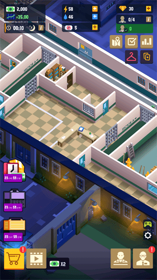 3、囚犯和员工需要一位具有良好发展愿景的优秀经理。改善和升级员工部门,使其具有更好的工作条件:维护室,办公室,厨房,医务室,洗衣房或安全区。不要忘记囚犯:升级他们的淋浴间,监狱院子,开辟新部门,增加牢房模块,改善探视室和食堂。负责水和电的供应,使您的监狱更舒适。
