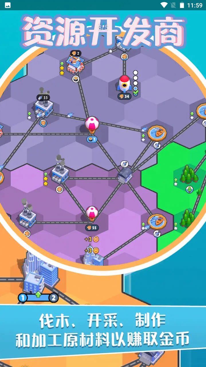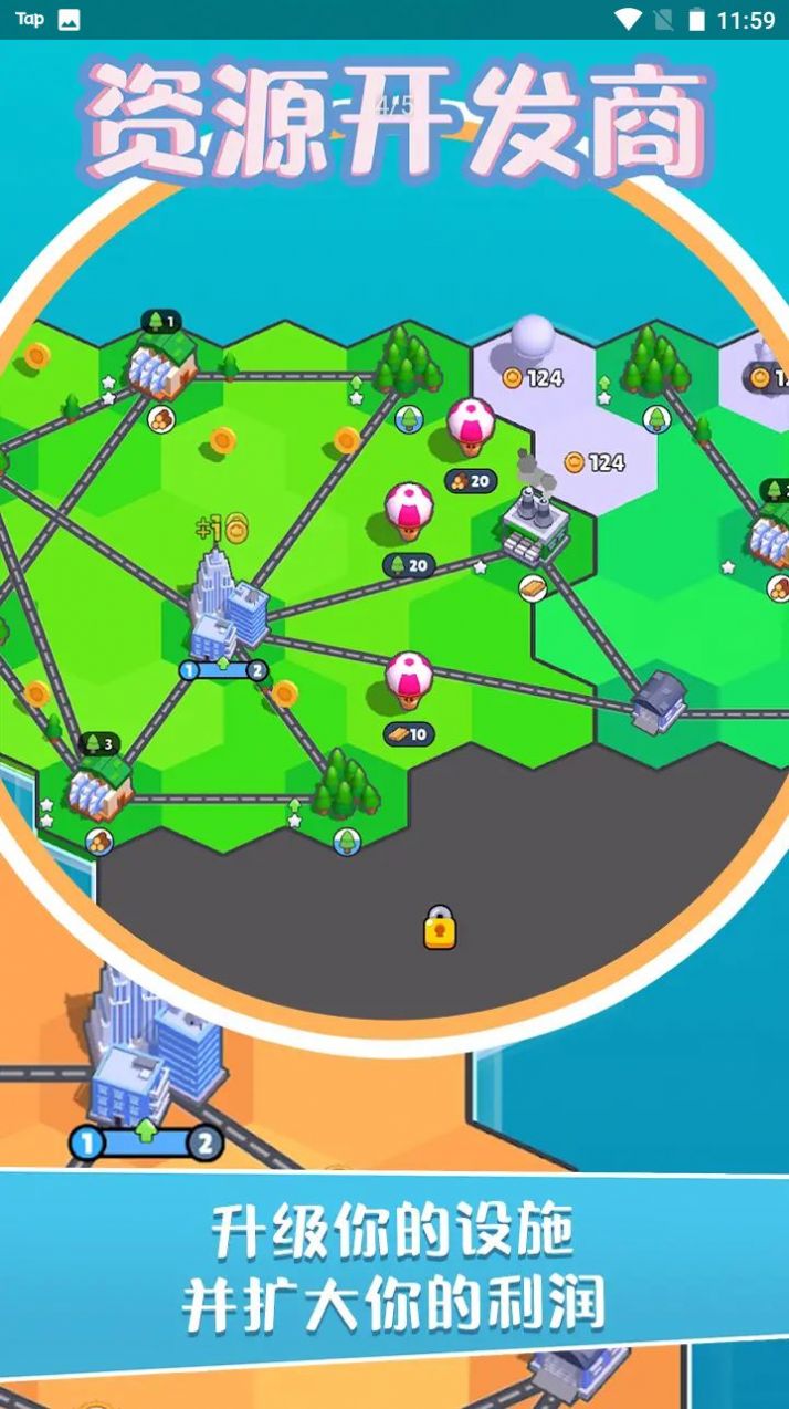 2、在这里你可以探索多个地区和资源类型,为你提供广阔的经营空间。