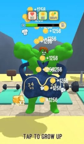 1、你需要在有限的时间内尽快点击屏幕拍打各种健身器材和物体来获得积分和升级。