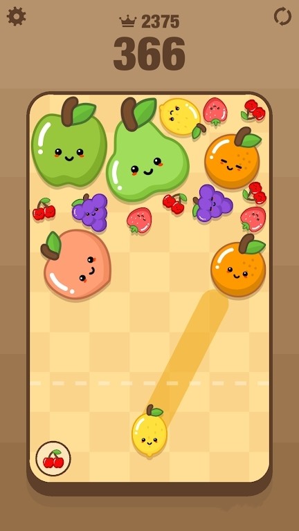 1.拥有可爱的卡通风格画面,体验清新的水果合并乐趣。