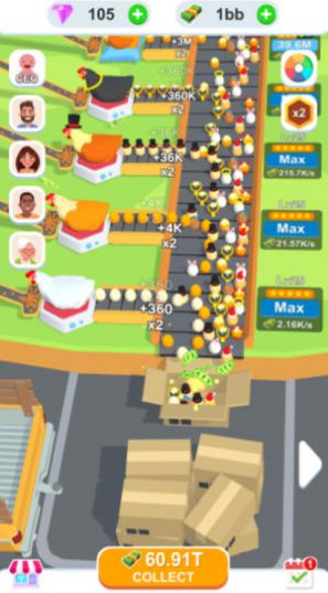 2.通过提高产量和价格来提高收入,并升级生产线以解锁新的鸡蛋种类;
