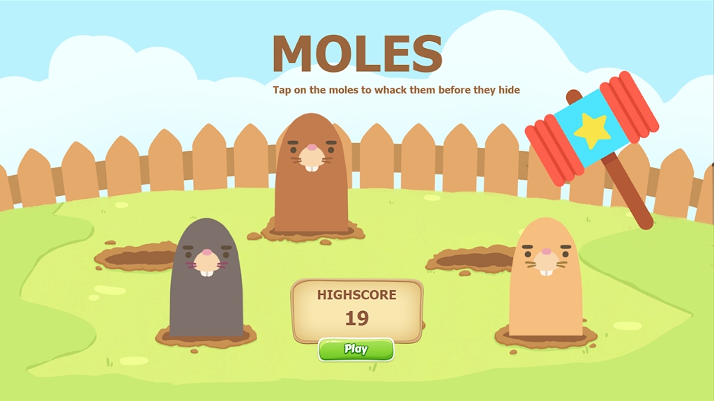 1、通过点击屏幕敲击钻出的地鼠,尽可能击中更多的地鼠,获得更高的得分;