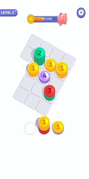 金币堆栈难题是一款分类整理的手机闯关游戏。在游戏中,你将面对独特设计的金币堆栈挑战和不同难度的关卡内容,需要动动脑筋,进行思考和决策,以完成关卡目标。这款游戏的玩法非常有趣,操作简单轻松,没有太过复杂的过程,适合任何小伙伴尝试。你需要将金币按照不同规则进行分类整理,正确堆叠在一起。通过合理的思考和策略,解决难题,顺利完成关卡任务。金币堆栈难题游戏介绍