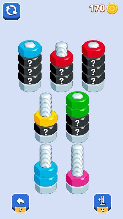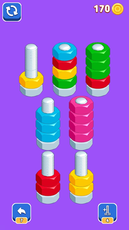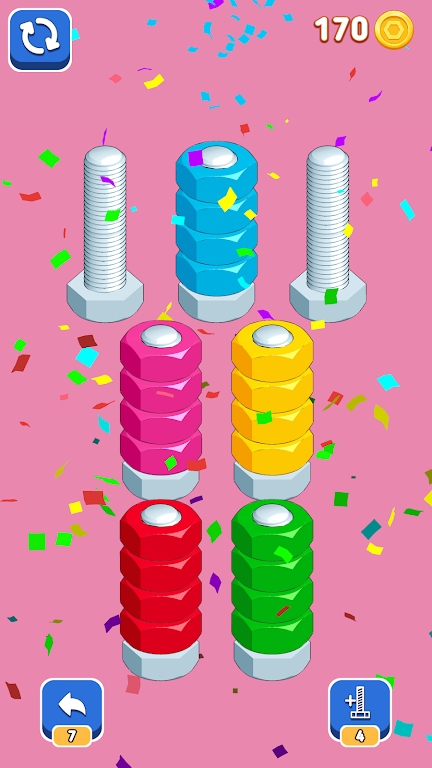 游戏以多彩的螺母组成的拼图为基础,通过巧妙的难度设计,让玩家能够轻松挑战自己并达到放松身心的效果。