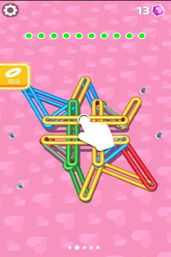 3、不断的缠绕放置图钉,掌握一定的技巧,就可以轻松完成任务;