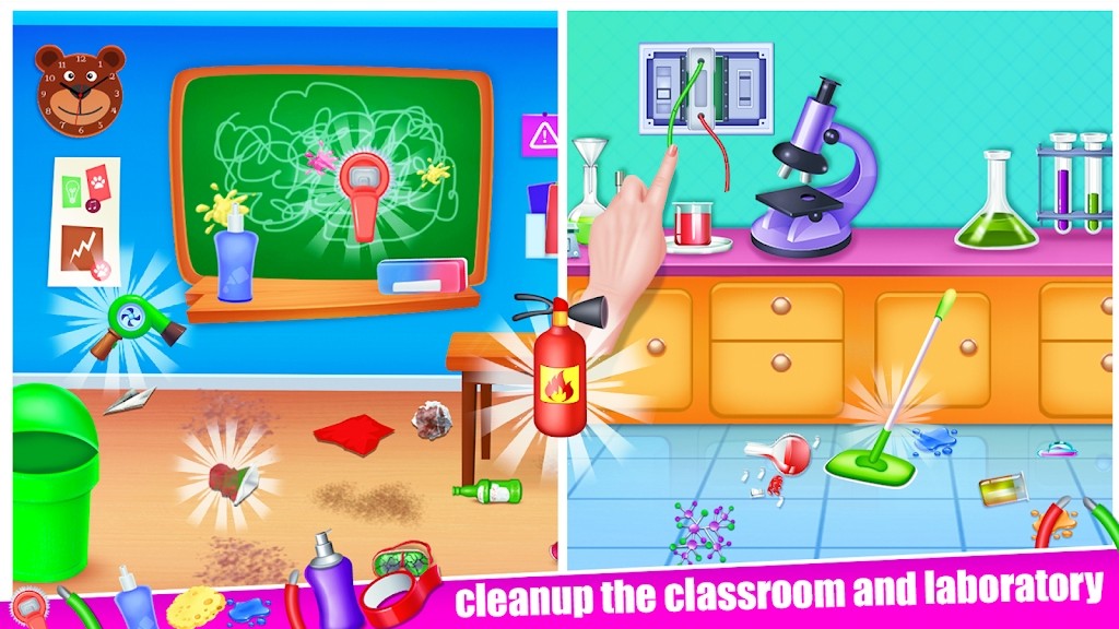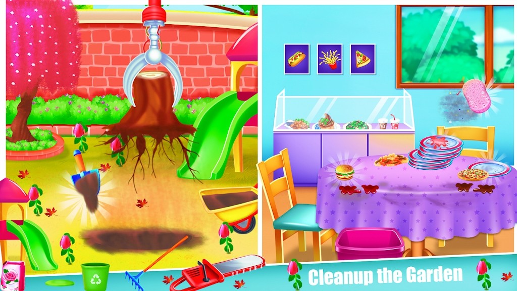 1、贴心又有趣的卡通风房屋清理休闲游戏。