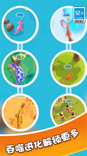 2、从微小生物开始,通过吞噬其他生物不断成长进阶成鲲。