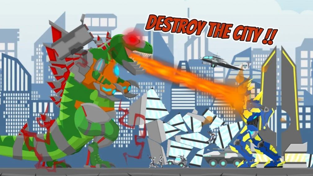 在机甲恐龙城市狂暴游戏中操控强大的机甲恐龙,展开激烈的战斗,体验华丽的画面和流畅的操作