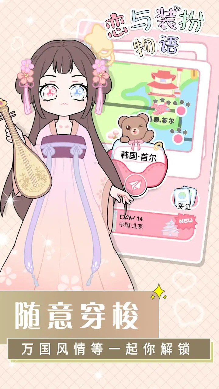 4、环游世界,寻找不同国家地区的精美服装饰品,海量精美服饰,装扮专属的少女形象;