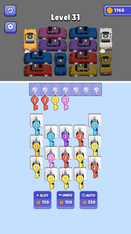 车钥匙卡住游戏之中玩家们需要不断地调整各种颜色的车辆不断的开出关卡,游戏玩起来十分畅快!