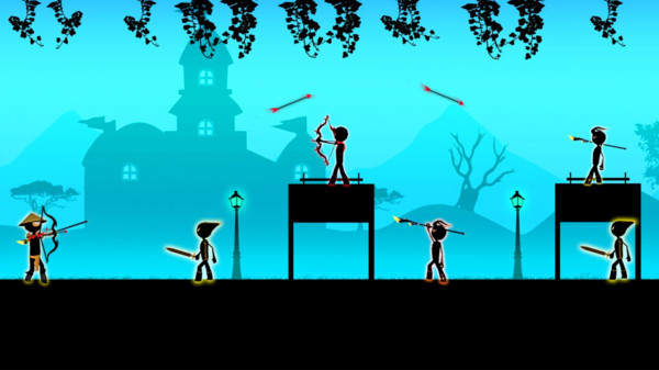 1.火柴人之间爆发了一场弓箭大战,这个过程中你需要将你的火柴人稳定的控制起来完成游戏任务即可;