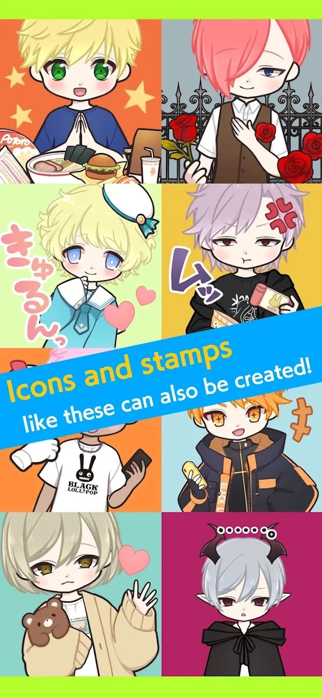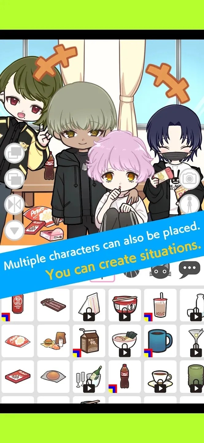 3、可以自由放置多个角色、背景和配件,创建情境,可在SNS上使用的图标和图章图像。