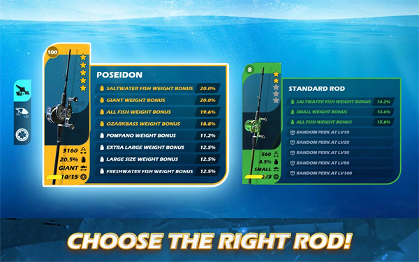 4、如果橙竿的强度较低,也可以通过提升鱼竿的星级来鱼竿的综合强度。欢乐钓鱼大师国际服说明