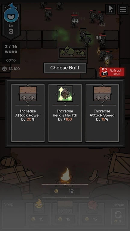定制您的防御策略:选择增益和战略性地放置塔,以建立您的抵抗之路。当你升级并选择成长增益时,你的防御将成为一座固若金汤的堡垒。