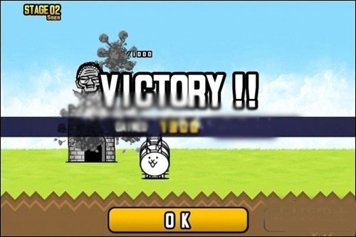 然后进入第四关,先将金钱上限升级为二级,然后召唤14个大男子主义猫开始进攻,注意敌军有了一个全新的兵种,是一种类人生物,如果抵挡不住了可以使用猫炮进行攻击,基本上过关就没有悬念了。