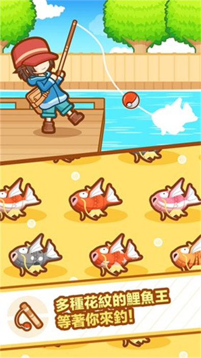 在这个游戏里,可以钓到锦鲤花纹及水珠花纹等各种花纹不同的鲤鱼王!