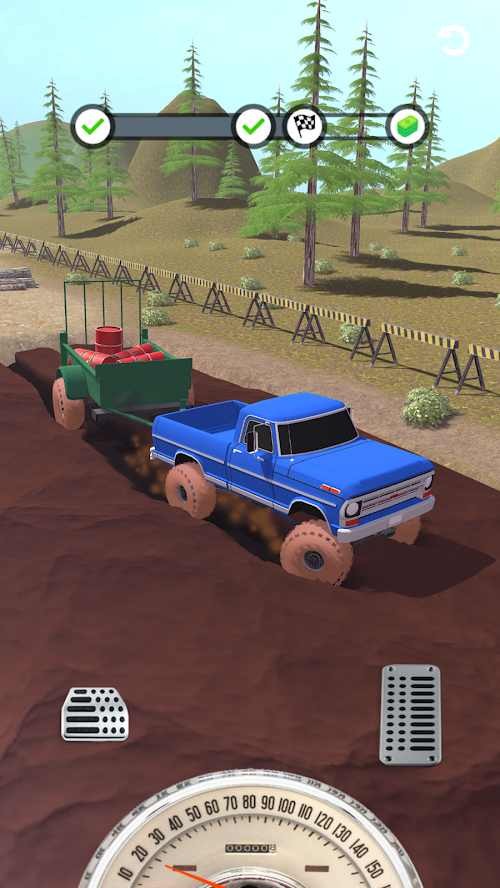 2、使车辆在泥泞中平稳行驶,以最大马力冲刺到底。
