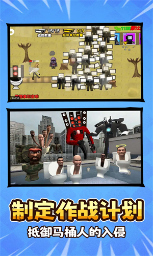 马桶人作战计划是一款很好玩的马桶人类型的塔防闯关游戏,游戏的玩法都是很简单的,大家需要策略性的放置攻击塔和经济塔来抵御马桶人的攻击,只有抵挡所有马桶人的攻击才算完成了挑战,并且每消灭一个怪物都能获得金钱,还能够以此来升级或者购买自己的装备,对这种游戏感兴趣就来下载吧。马桶人作战计划推荐