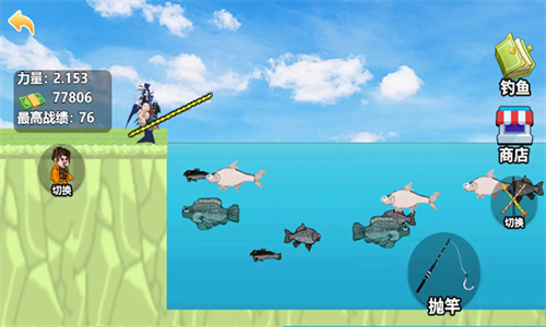 1、玩家可以在游戏里去尽情甩竿,感受前所未有过的创意性钓鱼玩法。
