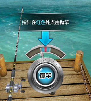 钓鱼》这款游戏中似乎简化了,抛竿这个技术活变成了反应测试,当我们按下中间的准备按键后,屏幕中间就会出现一条能量条,来回波动的能量条是你要抛竿的力量,当我们按下中间开始按钮,便抛竿成功。