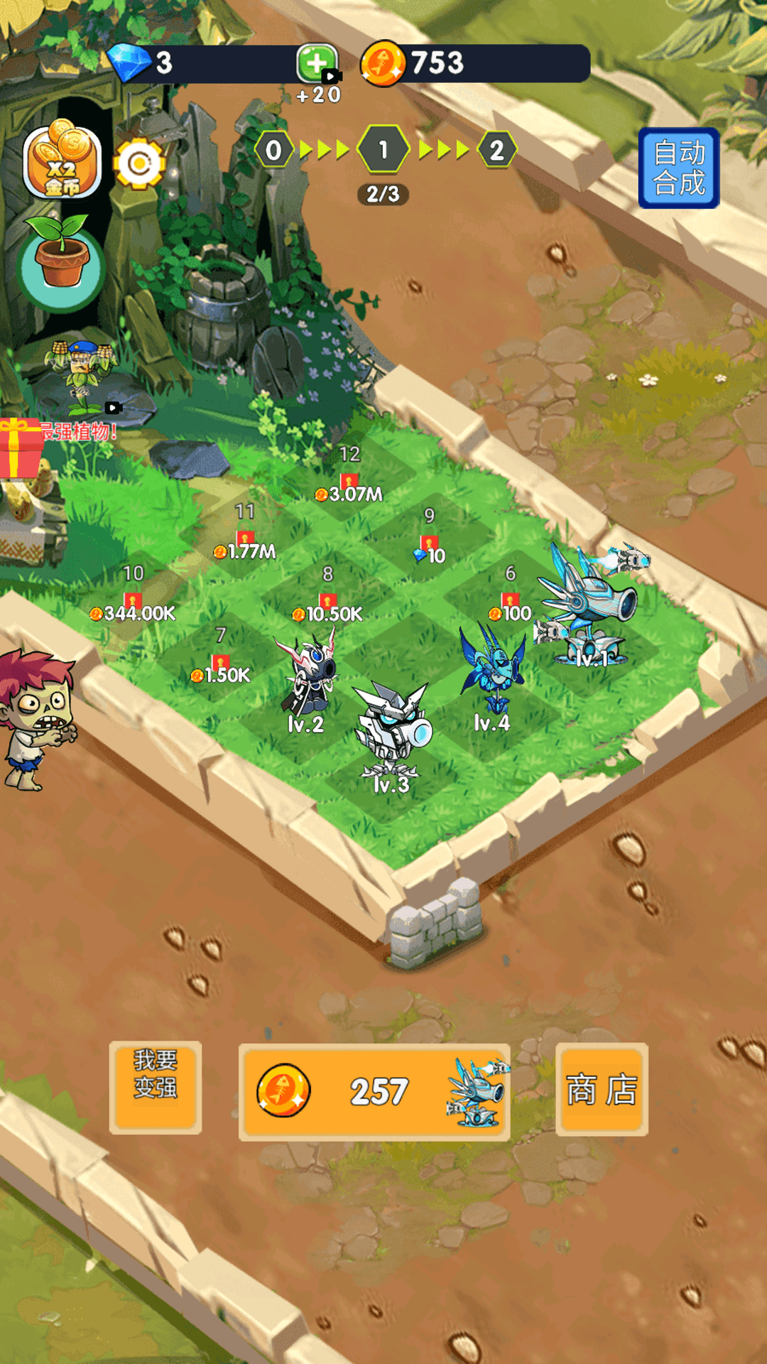 2.僵尸大军同样不容小觑,它们将不断挑战玩家的防御策略,让每一场战斗都充满变数