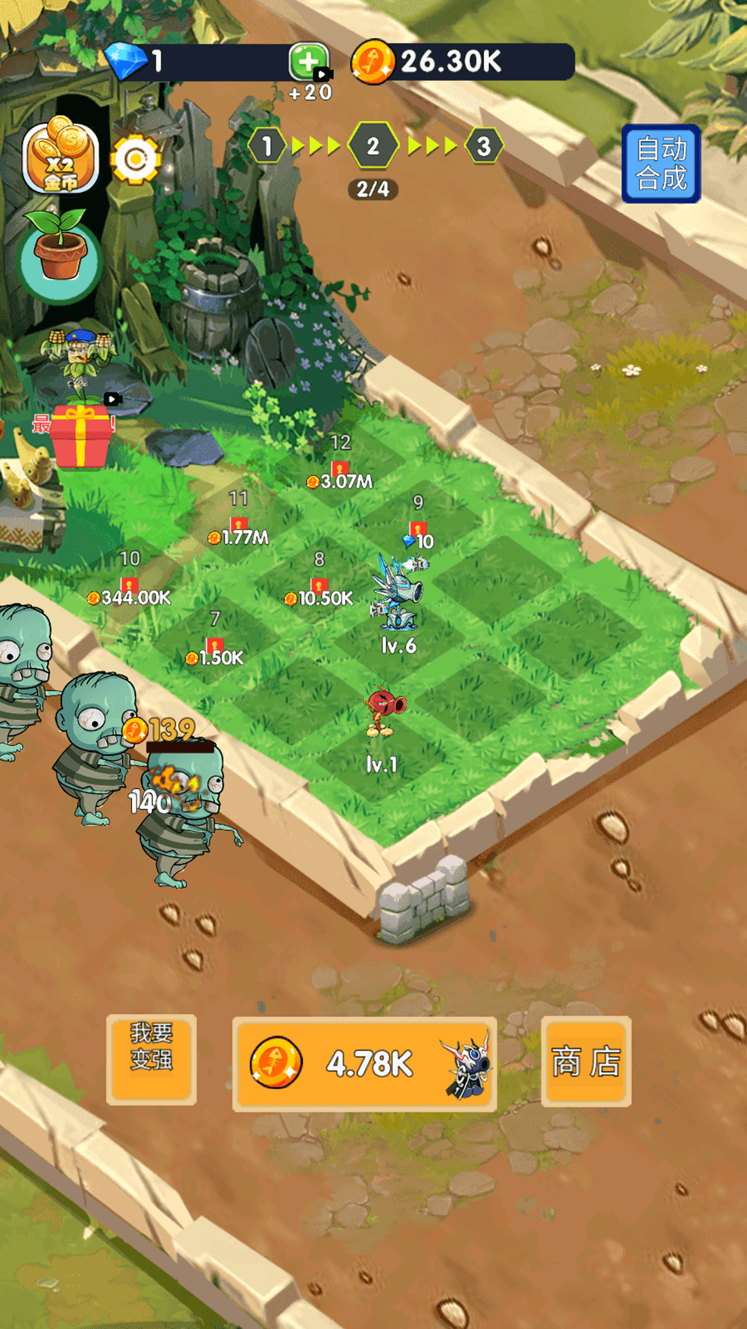 3.从基础的豌豆射手到能够释放强大法术的向日葵法师,利用地形优势和植物特性,有效阻击僵尸的进攻