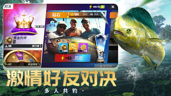 惊喜总在下一杆!挑战巨物大鱼,感受肾上腺素的飙升。黄金鱼情、藏宝图特殊钓场、稀世奇珍大鱼……你永远不知道下一个惊喜会是什么,只知道他们都在等待你的挑战与成就!