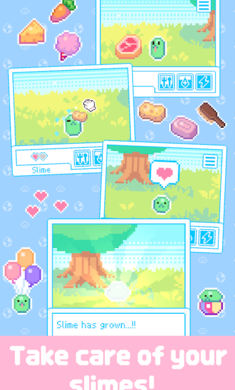 2.定时喂养史莱姆,与它们互动,增加亲密度,解锁更多互动动作。
