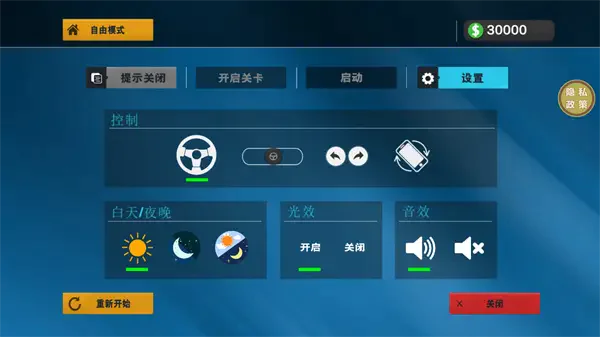 1、超多的游戏操作方式玩家们都可以进行选择,有方向盘操作,按键操作,重力操作;