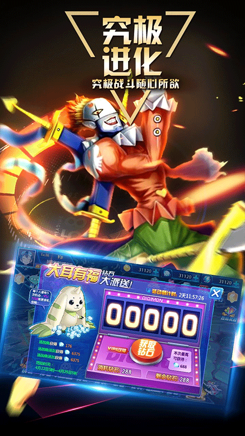 数码兽养成:玩家可通过战斗、完成任务、参与活动等方式获取经验和道具,提升数码宝贝的等级、进化、升星、解锁基因等,让数码宝贝变得更加强大。不同的数码宝贝在进化后会获得不同的形态和技能,实力也会大幅提升。