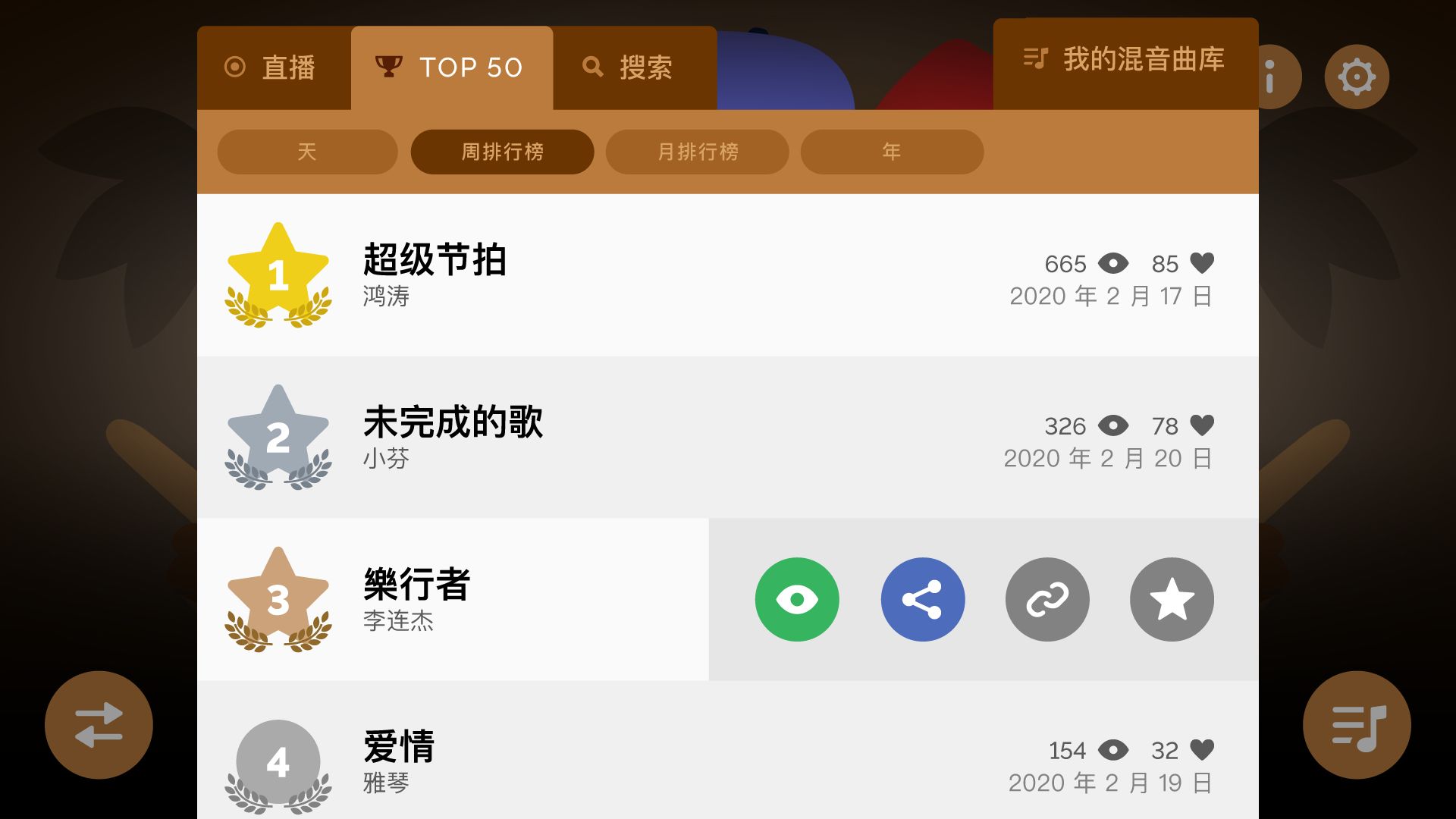 3、如果你的歌曲被评分评的很高,也许你能进入前50名,获得丰厚的奖励哦!