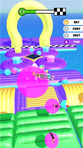1.吹出完美的泡泡并用它来与对手比赛,弹跳,留在浮动平台上,将你的敌人推离轨道,赢得胜利。