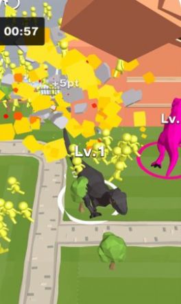 暴走恐龙:这是一款有着动漫风格的休闲闯关类游戏。在游戏中,玩家将要在各个关卡中闯关。游戏有着大量的关卡可以挑战,每一个关卡都有着非常严格的时间规定,玩家需要操控着恐龙在关卡中不断的吞噬小人来壮大自己,在时间内达到目标才可以通过关卡。不同的关卡对于恐龙的体型有着不同的要求,玩家可以通过吞噬场景中的各个小人来快速的完成关卡的目标。