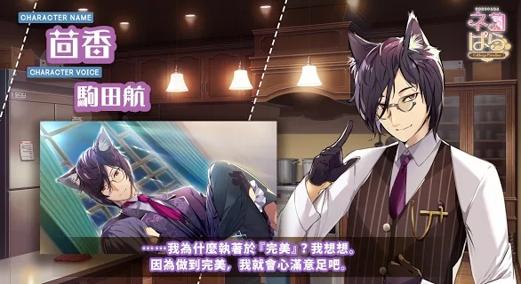 【猫郎乐园】猫郎乐园是一款女性向的恋爱模拟游戏,猫郎乐园游戏中融入了经营元素,玩家将与四位猫郎一起经营咖啡店,每一位猫郎都有单独的剧情故事等待玩家体验,可以通过与猫郎对话的方式触发这些精彩的剧情故事,游戏邀请知名声优为角色配音,全语音配音让每个玩家都能沉浸在游戏中,体验有趣的剧情故事。