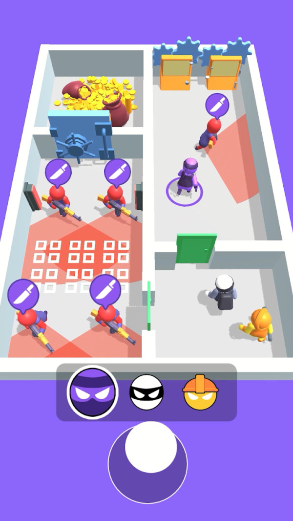 游戏整体画风的简约至简,有着出色的魔性,游戏中玩家将扮演的角色都是利用大楼屋内的建筑物隐藏身形,接着出其不意放到所有警戒守卫员。
