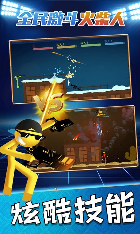 1、全民激斗火柴人游戏中的各种技能特效都是非常炫酷的,灵活的使用对敌人造成巨大伤害。