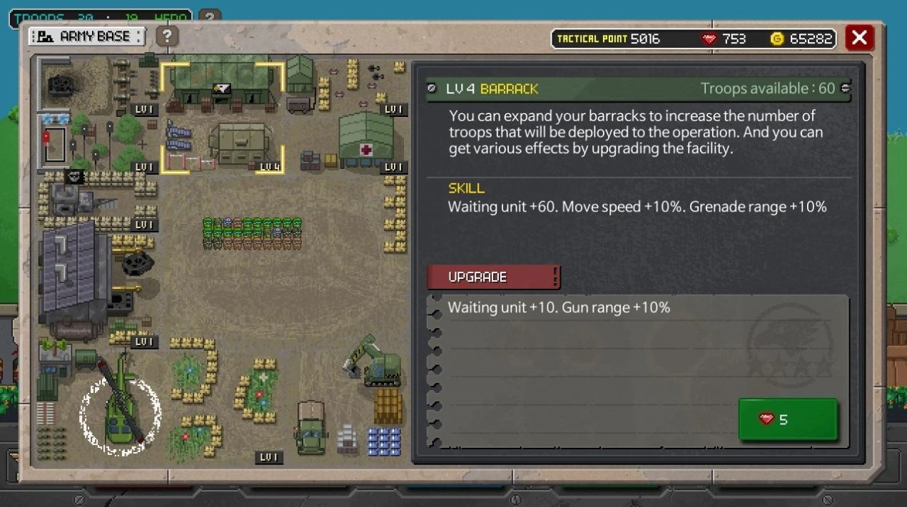 3、为每个类别使用各种武器,武器修改和设备,升级您的基础设施并提高士兵的能力;