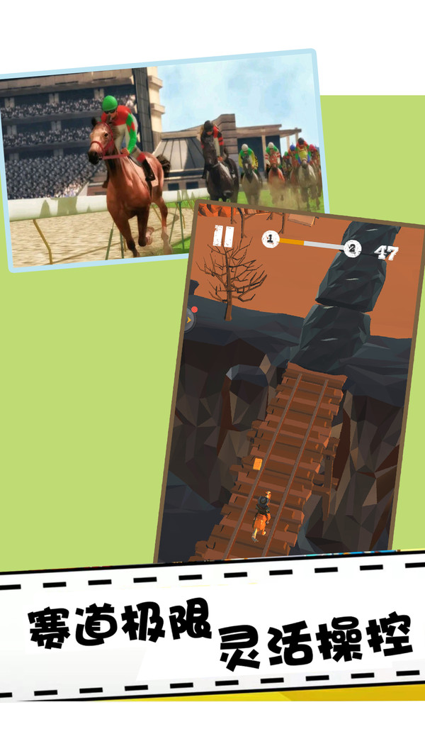 赛马竞技是一款好玩有趣的赛马冒险竞速类手机游戏,紧张刺激的赛马对决,不仅是对人的考验,对马的要求也很高,玩家需要通过不断的训练才能够让你的马拥有极高的熟练度,快速躲避各种障碍物,让自己在比赛当中尽可能取得靠前的成绩,非常有意思,感兴趣的话就来下载吧。