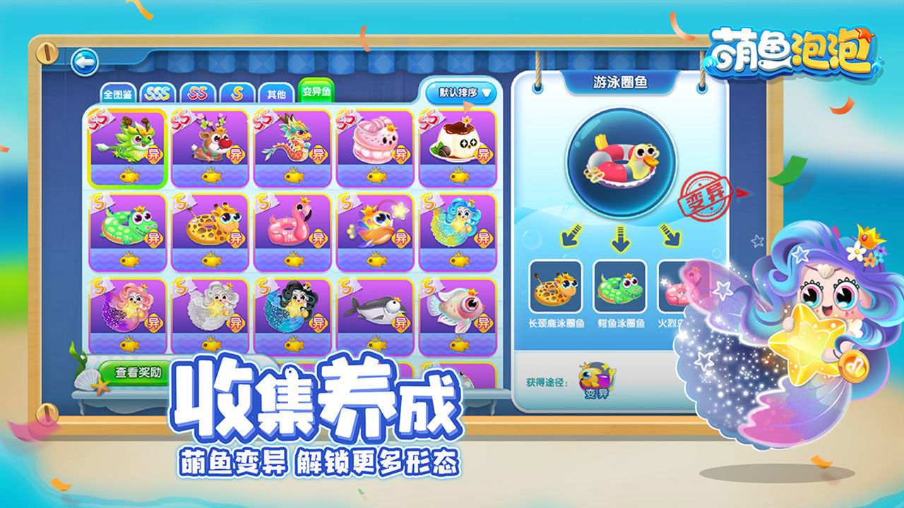 收集福音:多达150种以上的萌鱼待你收集,且持续更新