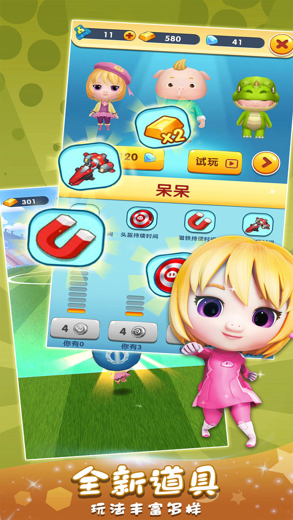 3、各种各样的道具都有自己不同的效果,我们需要用这些道具来帮助自己完美的跑的更远!