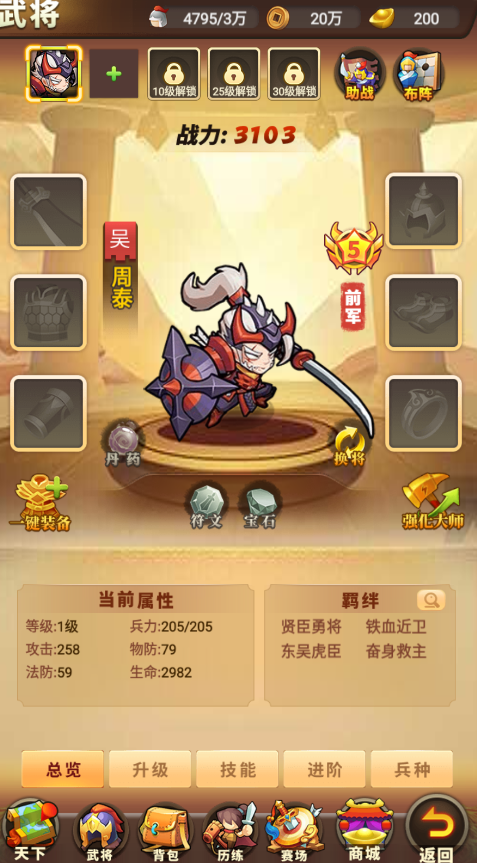 小小士兵一款非常刺激的战术类游戏,融合三国等精彩纷呈的元素,采用Q版渲染画面,为玩家带来最佳的体验感受。在游戏中,玩家不只拖曳放置即可作战,还可以持续发展你的武将,增加战斗技能。另外,游戏还设置多种不同的阵法可供玩家体验。小小士兵游戏特色: